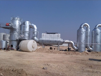 廢液和壓縮空氣經管路控制系統進入霧化系統,廢液霧化后噴入燃燒室,并依次通過迷宮除塵室和二次燃燒室,廢液中的有機物被焚燒,水分被蒸發。焚燒產生的高溫煙氣進入空氣換熱器,然后依次通過兩級急冷、吸附塔,煙氣中的微小粉塵及有害物質(SO2、HCl等)被捕集吸收,經處理后的干凈氣體由引風機引入煙囪,排入大氣。